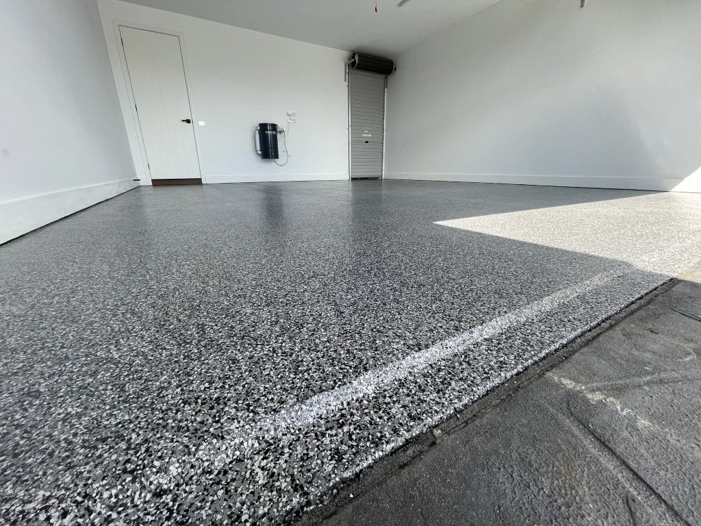 A clean, seamless epoxy flake floor that actually lasts